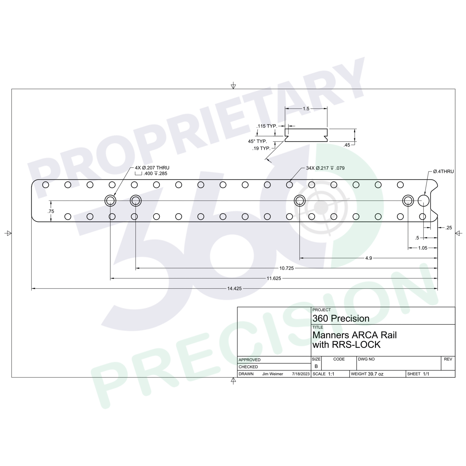 This is a full-length ARCA Dovetail mount that works with any RRS style attachments including bipods, tripods, plate adaptors, etc. The rail will replace original Area419 or the Manners rail on the PRS-TCS stocks. The rail weighs 39.7 ounces and is .45β thick and is 14.425β long and is made from 1018 cold-rolled steel finished in black nitride. Now featuring R-Lock from really Right Stuff.